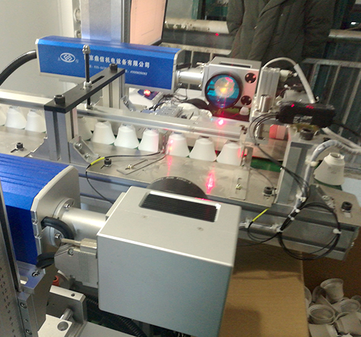 該設備理料裝置和斜面定位裝置根據需要設為兩組,工件進入打標區域達到一定數量后,激光打標單元交替打標